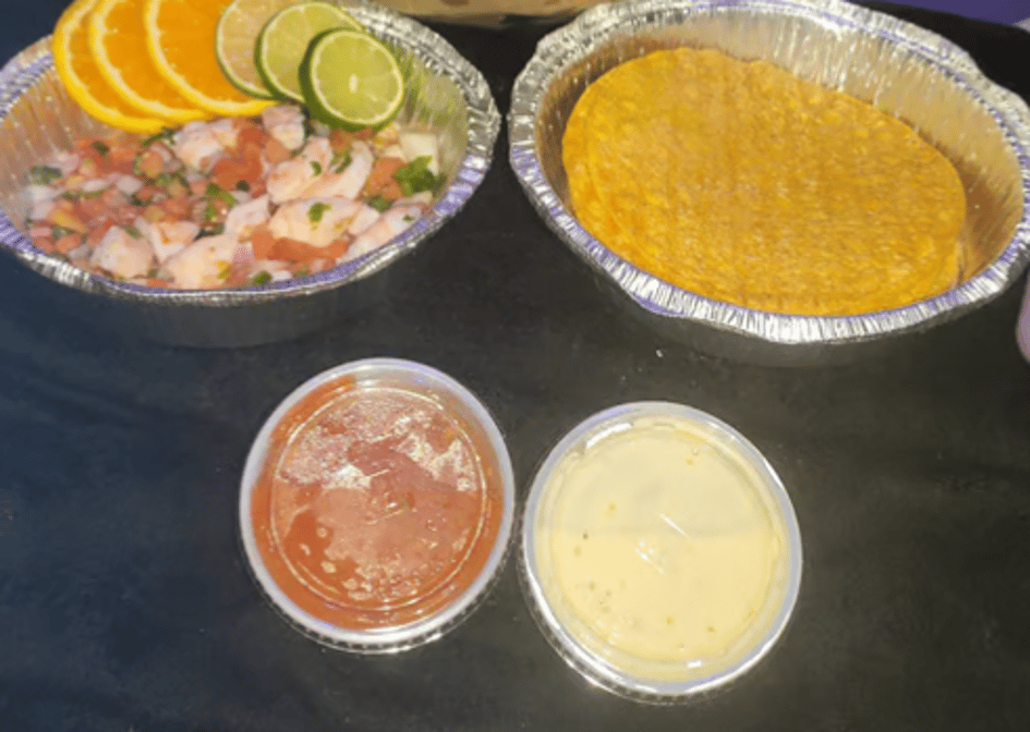 Pescado o camarón. Consuming raw or uncooked meats, poultry, seafood, shellfish or eggs may increase risk of foodborne illness especially if you have certain medical condition. We are not responsible for an individual's allergic reaction to our food or ingredients used in food items. Please be aware that there may be bones in fish fillets.