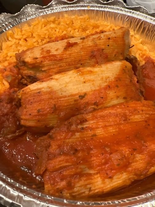 Three tamales served with rice & your choice of soup or house salad.